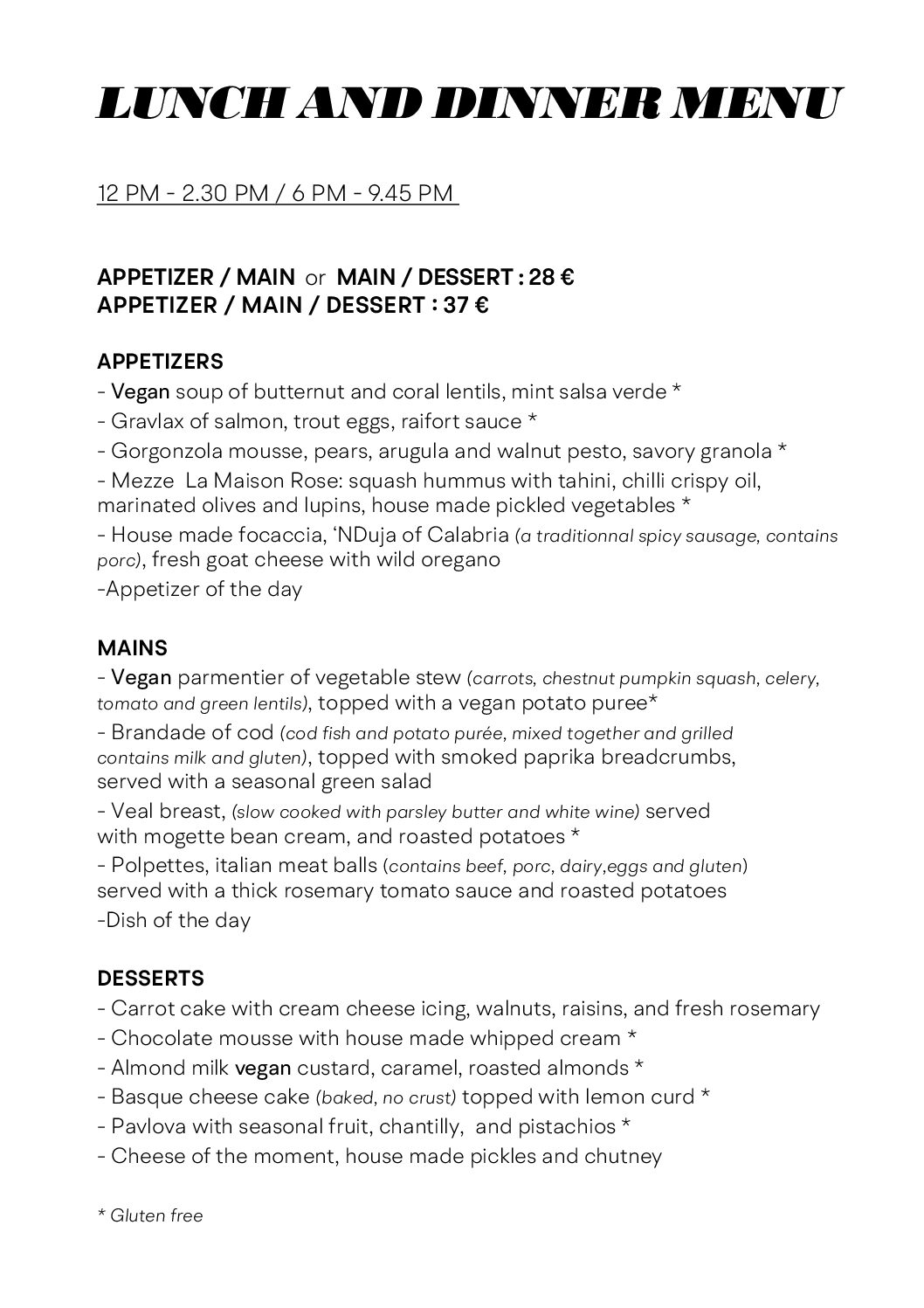 Consultez notre module de reservation pour découvrir notre menu de fêtes!